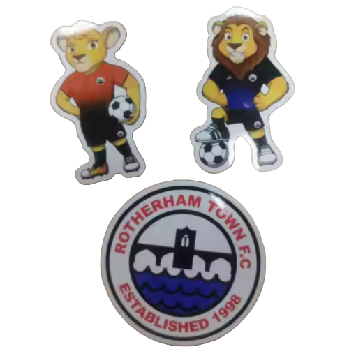 A collection of RTFC Vinal stickers. Including our mascots Rory & Roxy and RTFC Badge. all estimated around 80mm.